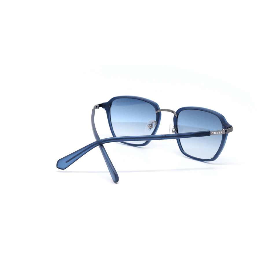 Guess Sunglasses. Series number: GU00030. Color code: 91W. Shape: Square. Lens Width: 53 mm. Lens Bridge: 21 mm. Arm Length: 145 mm. 100% UV protection. Frame Material: Plastic. Frame Color: Matte Blue. Lenses Type: Gradient Blue. Rim Style: Full-Rim. UPC/EAN code: 889214265258. Guess Gradient Blue Square Men's Sunglasses GU00030 91W 53.
