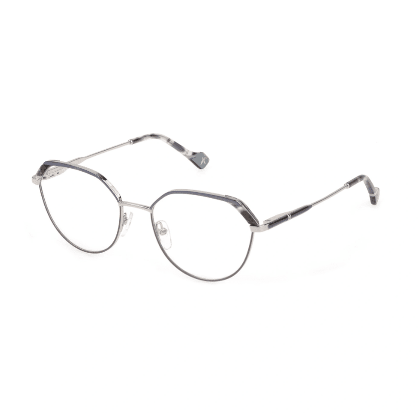 These Yalea VYA075 INGE eyeglasses come in a stylish Grey Silver . Choose from our huge selection of prescription lenses options to add practicality and convenience to a complete and modern look this season. The item's frame is made of Metal .