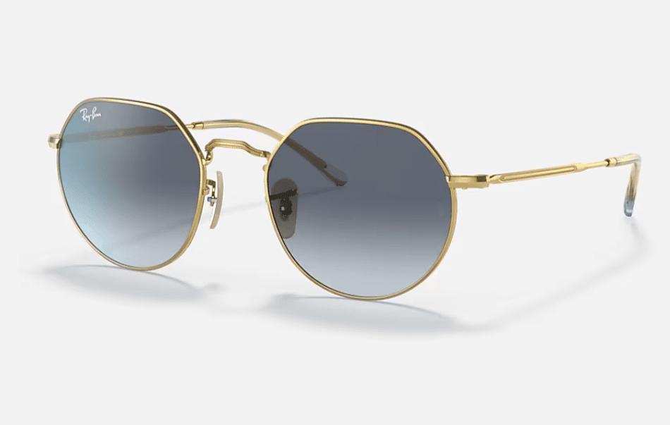 Ray-Ban RB3565 Jack Sunglasses are a legendary must-have, with a history as rich as the metal frame color gold. The hexagonal shape, irregular lens front, and thin metal temples in gold are all part of the iconic Ray-Ban look. For this generation, Ray-Ban created gradient blue/grey lenses and a lens treatment to match the metal frame color.