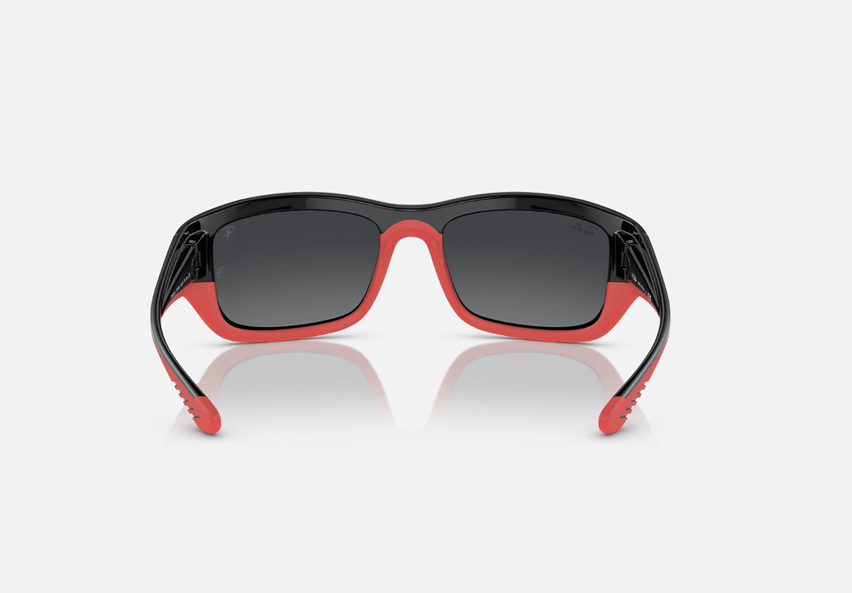 Ray-Ban RB4405M Scuderia Ferrari Collection Sunglasses is an exclusive and limited collection, made for a true connoisseur of style and a passionate enthusiast of motorsports. These black on red frames feature gradient silver lenses and are inspired by the iconic red Formula 1 racing car.
