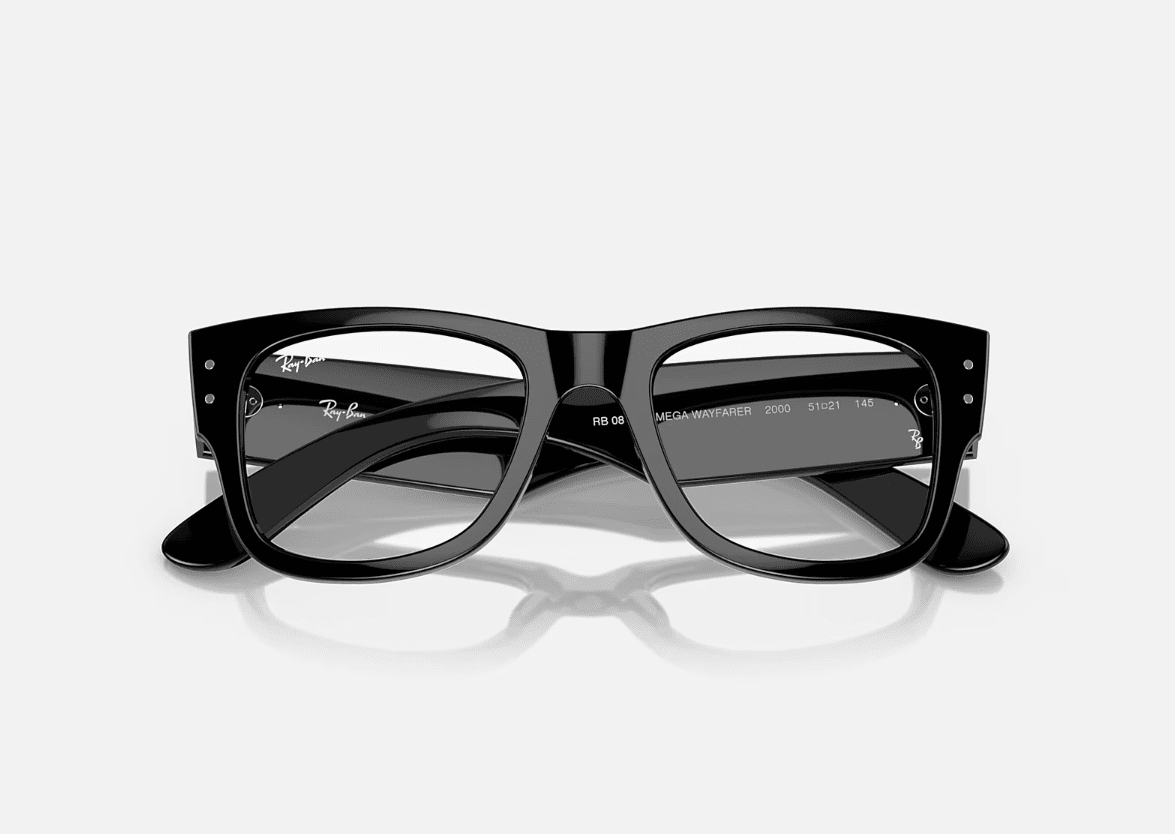 Own the room with the new Ray-Ban Mega Wayfarer Optics RB0840V eyeglasses. These oversized eyeglasses are designed to make a statement. The black frames make them perfect for those looking for a classic style.