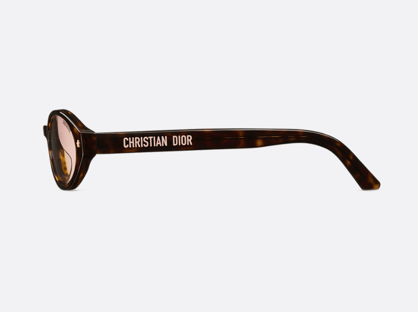 The DiorPacific R1F sunglasses elevate the line with a contemporary low oval shape. The brown tortoiseshell-effect acetate frame is adorned with gold-finish star details on the front, while the temples feature a pink Christian Dior signature. Completed by pink lenses, the essential style will lend an elegant touch to any look.