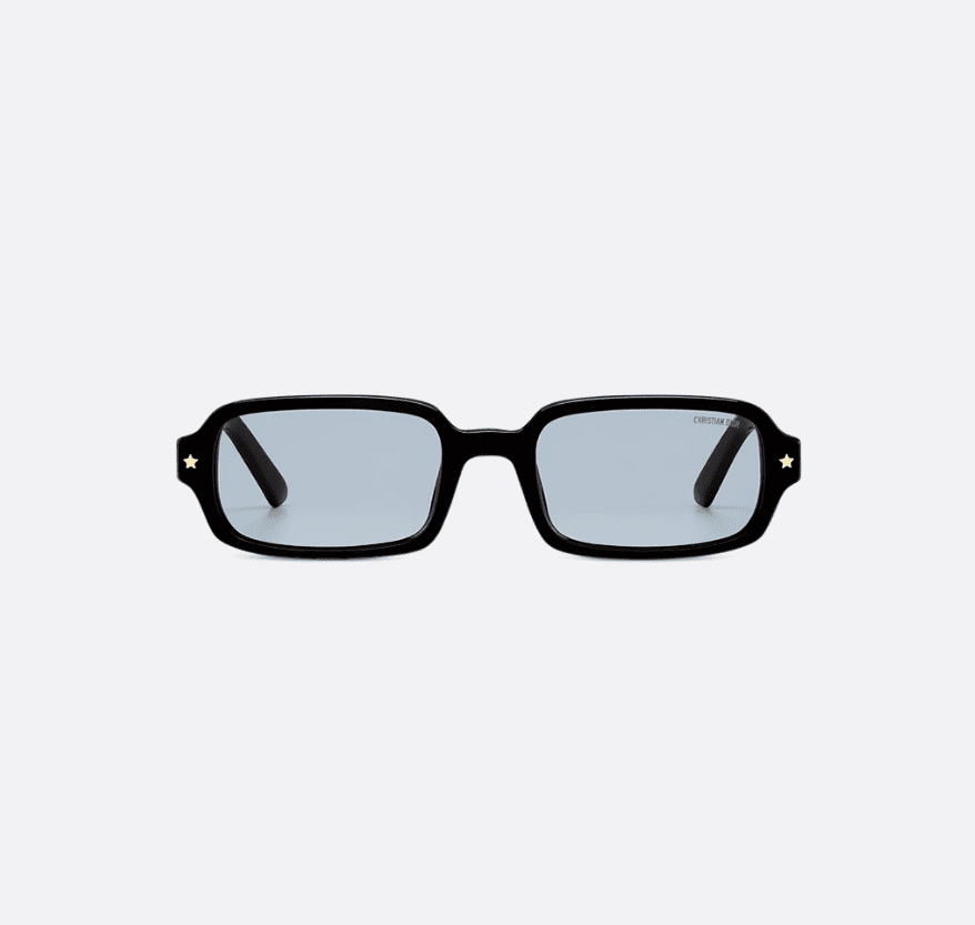 The DiorPacific S3I sunglasses elevate the line with a contemporary low rectangular shape. The black acetate frame is adorned with gold-finish star details on the front, while the temples feature the Christian Dior signature. Completed by gray lenses, the essential style will lend an elegant touch to any look